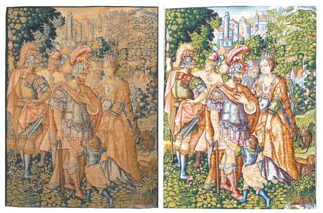この見送は毛綴で織られており、16世紀後半頃ベルギーのフランドル地方で製作、江戸時代初期に輸入されたものと考えられ、国の重要文化財に指定されています。